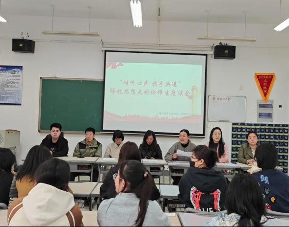 为进一步落实“四下基层制度”,冰球突破mg正规官网(初等教育学院)于4月2日在教师教育楼309室召开“倾听心声 携手共进”解放思想大讨论师生座谈会,全体辅导员以及各班级学生代表共同参加了此次座谈会。