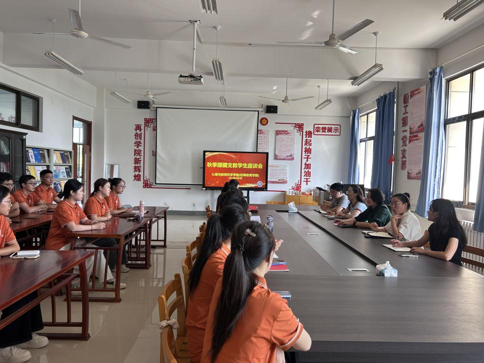 9月9日下午,冰球突破mg正规官网(初等教育学院)在学院资料室召开援疆支教学生座谈会。院长傅金兰、辅导员和援疆支教23名同学参加,会议由团委书记宋传美主持。