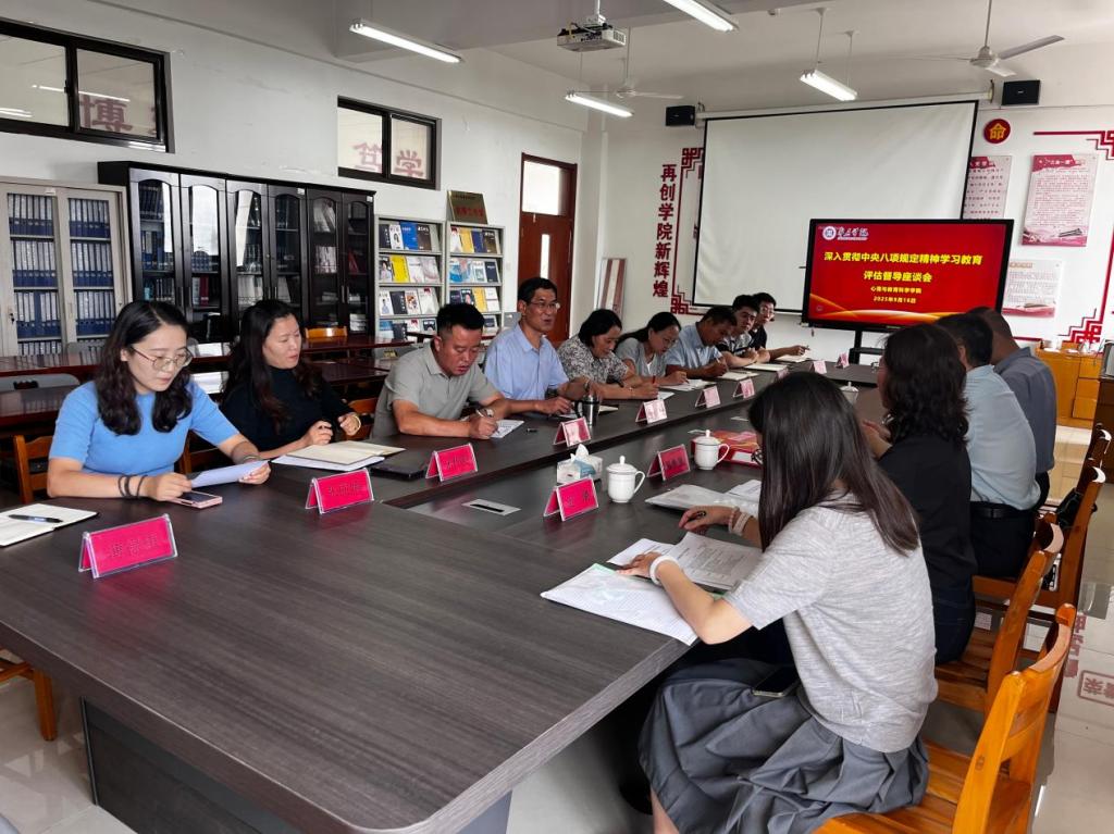 9月16日,冰球突破mg正规官网党委在学院资料室,召开深入贯彻中央八项规定精神学习教育评估总结会,学院党委班子成员、支部书记和党员教师代表参加会议,学校党委委员、宣传部长闫昕带领评估督导组成员一行四人到会指导,评估总结座谈会由学院党委书记刘玉宝主持。