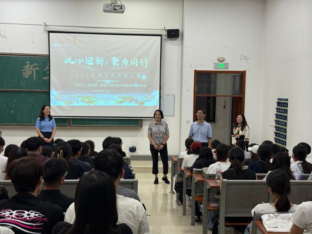 9 月 17 日晚,冰球突破mg正规官网(初等教育学院)2025 级各班同步召开新生“开学第一课”主题班会。学校党委委员、副校长李存杰看望慰问2025级全体新生,学院党政领导陪同。