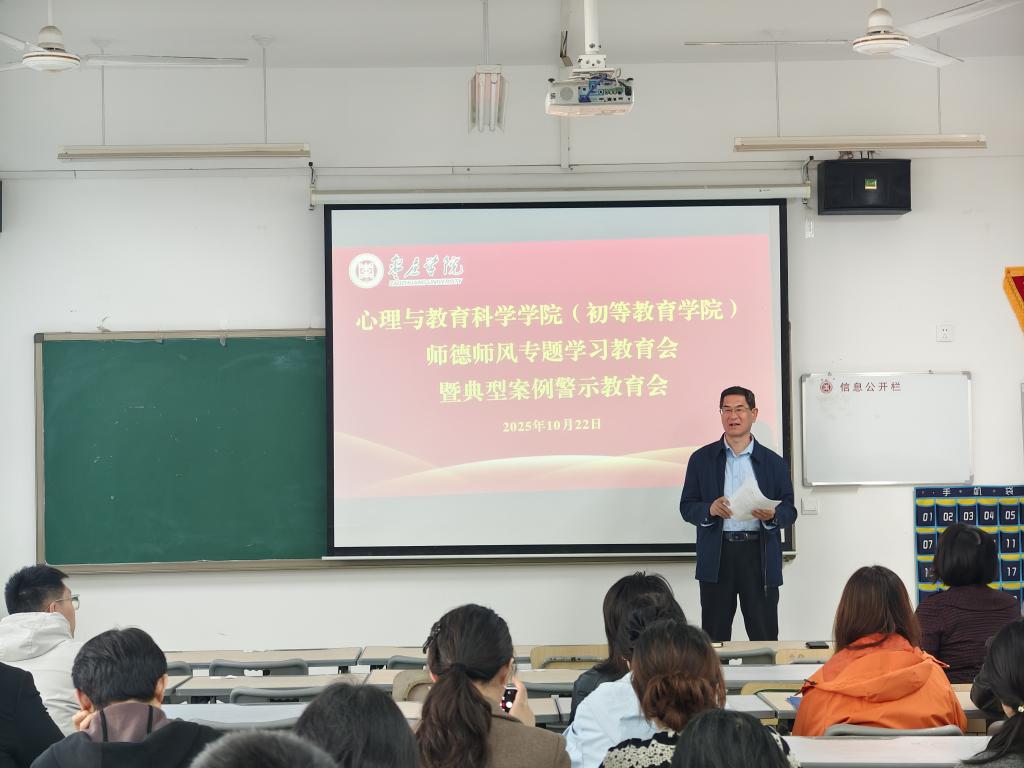 10月22日,冰球突破mg正规官网(初等教育学院)在学院309室召开师德师风专题学习教育会暨典型案例警示教育会。学院党政领导、全体教职工参加会议,会议由学院党委书记刘玉宝主持。
