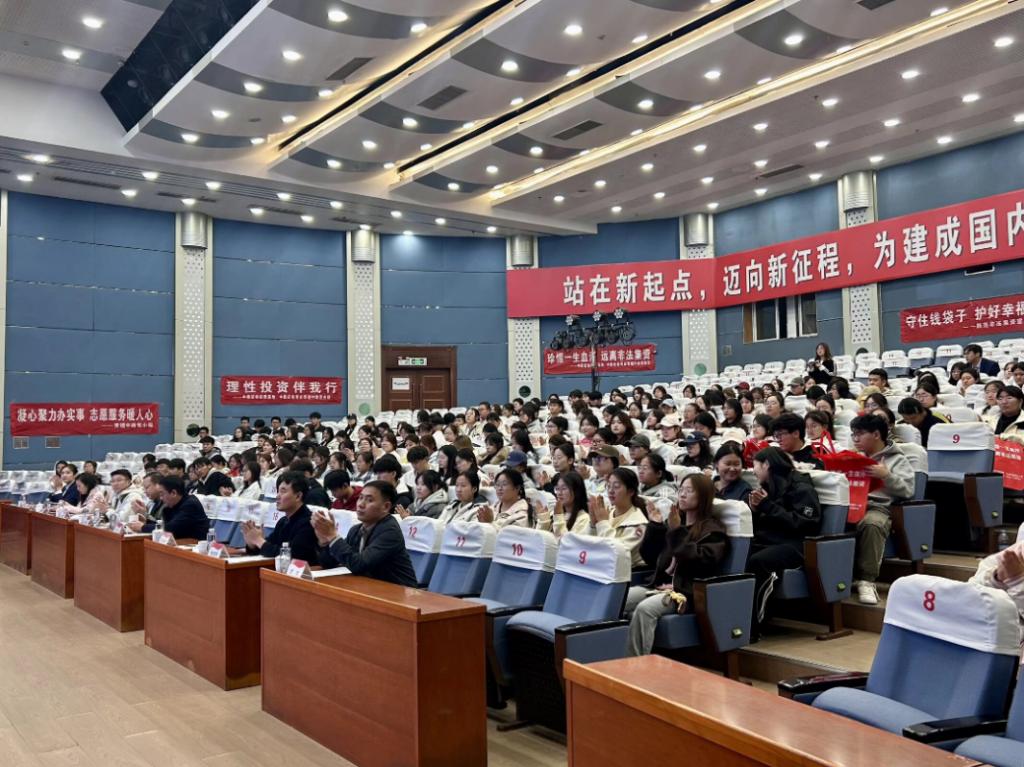 中泰证券宣讲会通过具体案例分析,互动问答等形式为同学们上了一节生动的金融反诈课。宣讲会上,贺庆和主任与郑家文秘书长先后发言,点明“防非打非”主题。中泰证券理财经理徐丹提出“筑牢投资防线,青春不踩坑”,介绍金融诈骗含义与发展趋势,并通过列举兼职刷单、校园贷诈骗等具体案例分析金融诈骗现状。同时提出四条防范措施:一是增强个人信息保护;二是正规渠道办理金融业务;三是理性判断金融信息;四是学会应对可疑情况。对年轻人财商培养作出建议,引导学生树立理性投资的观念。最后由资深理财经理为同学们讲述“证券账户的投资功能”,科普了国债逆回购、基金交易、基金定投等概念,并开展生动的互动提问,学子们积极回应、气氛热烈,活动圆满结束。