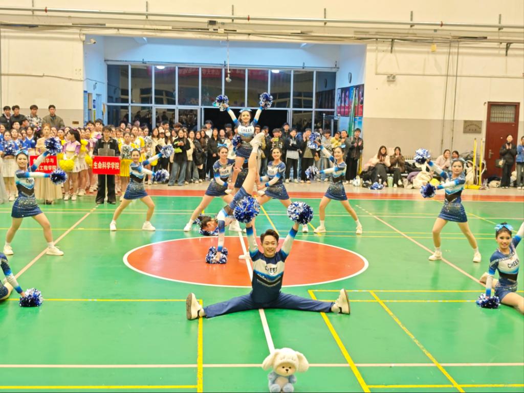 比赛现场,灯光璀璨,气氛热烈。我院啦啦操队员身着统一队服,以整齐有力的队形亮相,瞬间点燃全场气氛。伴随着动感激昂的音乐,队员们舒展肢体、跳跃旋转,每一个动作都精准利落,每一次队形变换都默契十足。从活力四射的托举,到灵动优美的肢体衔接,再到充满感染力的笑容与眼神,不仅展现出扎实的舞蹈功底,更传递出积极向上的青春态度,赢得台下评委与观众的阵阵掌声。