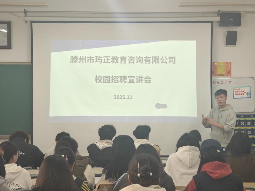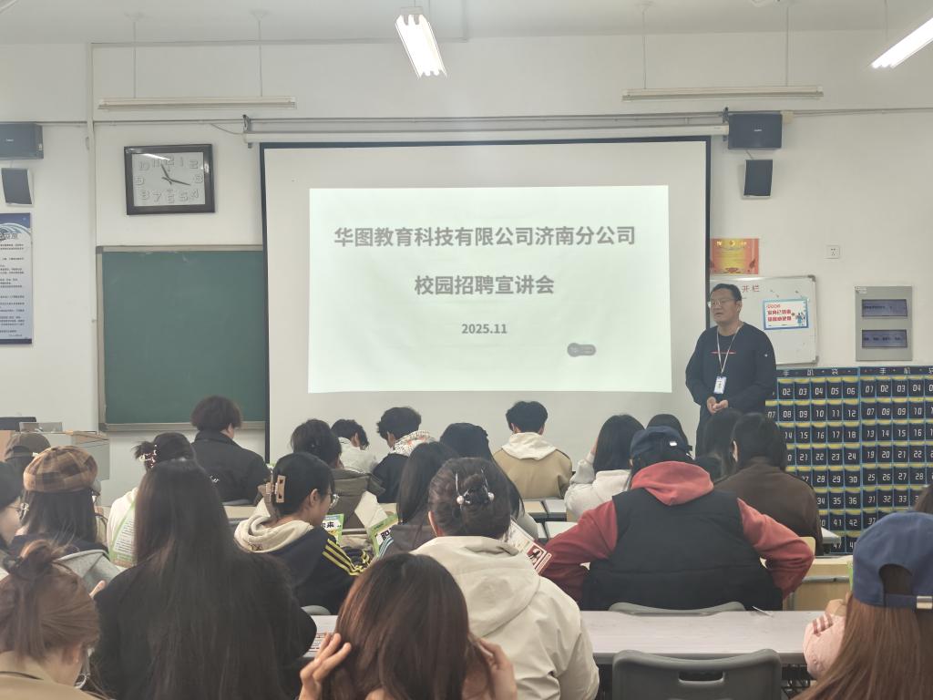11月1日,冰球突破mg正规官网(初等教育学院)联合北京学而思教育科技有限公司济南分公司、华图教育科技有限公司济南分公司、胶州市乐乐幼儿园及滕州市玙正教育咨询有限公司,在教师教育楼305教室举办“2026育见未来”校园招聘宣讲会。2026届毕业生参加活动。